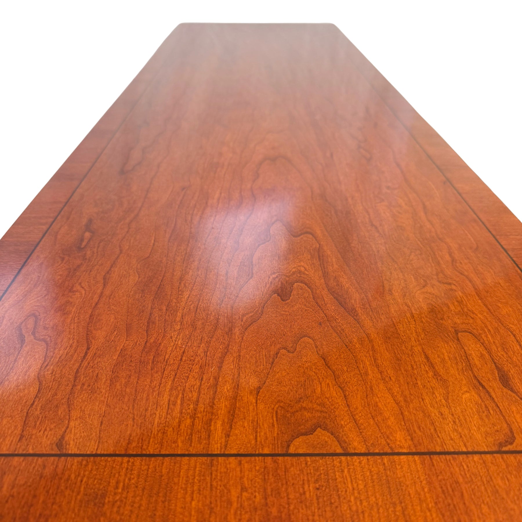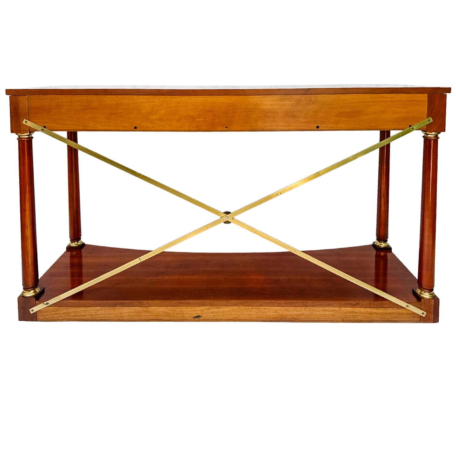 1990 Ethan Allen Medallion Collection Cherry Console Table With Brass X-Stretcher