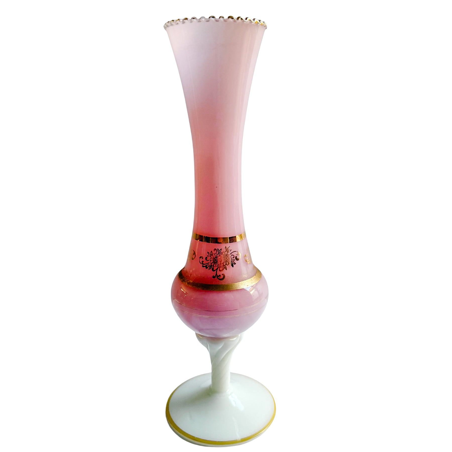 Mid 20th Century French Pink Opaline Vase With Cameo
