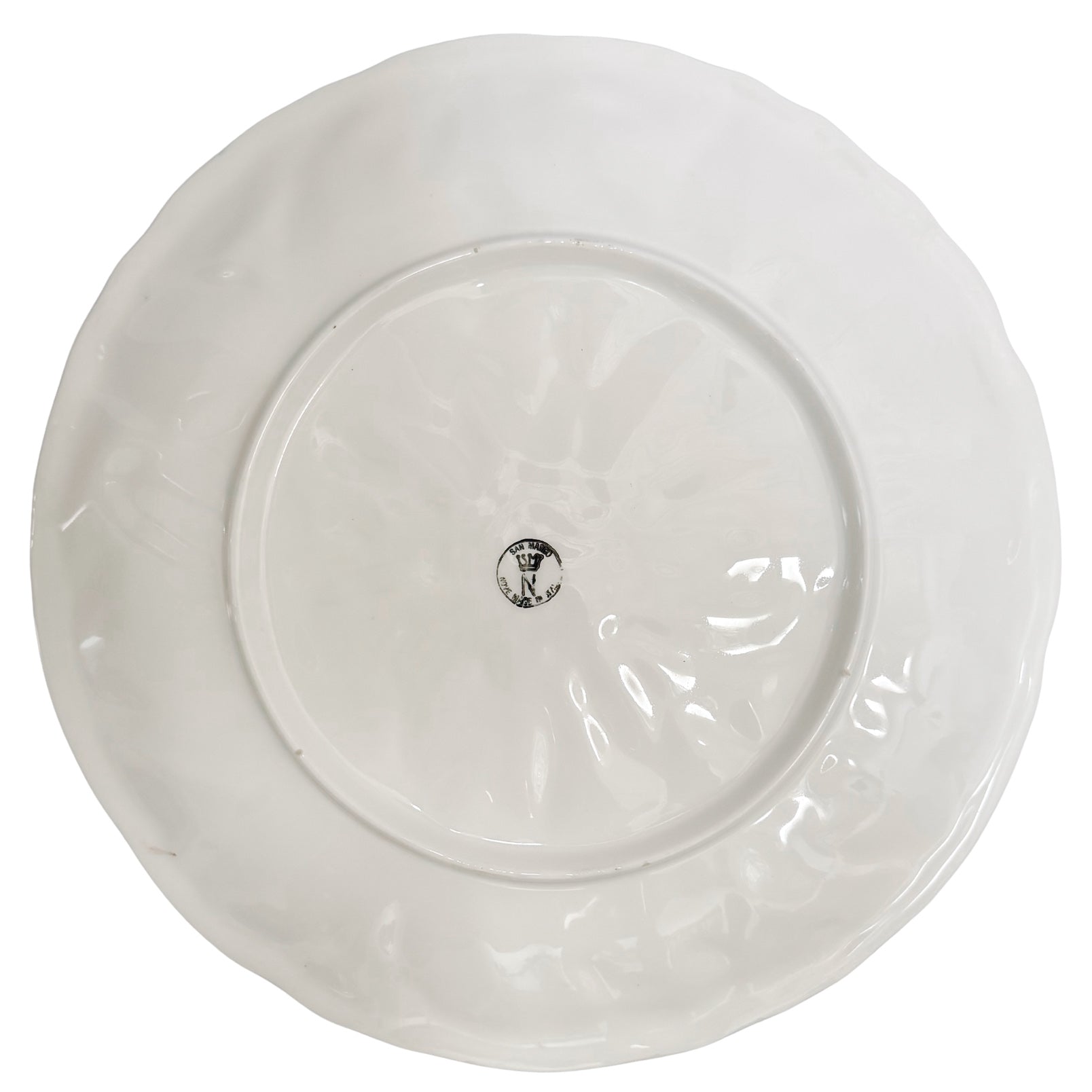 Feminine and delicate, this large Italian faience plate is a great testament to Italian artistry. It was hand-painted in gorgeous pink and green hues with just a little bit of yellow for contrast.