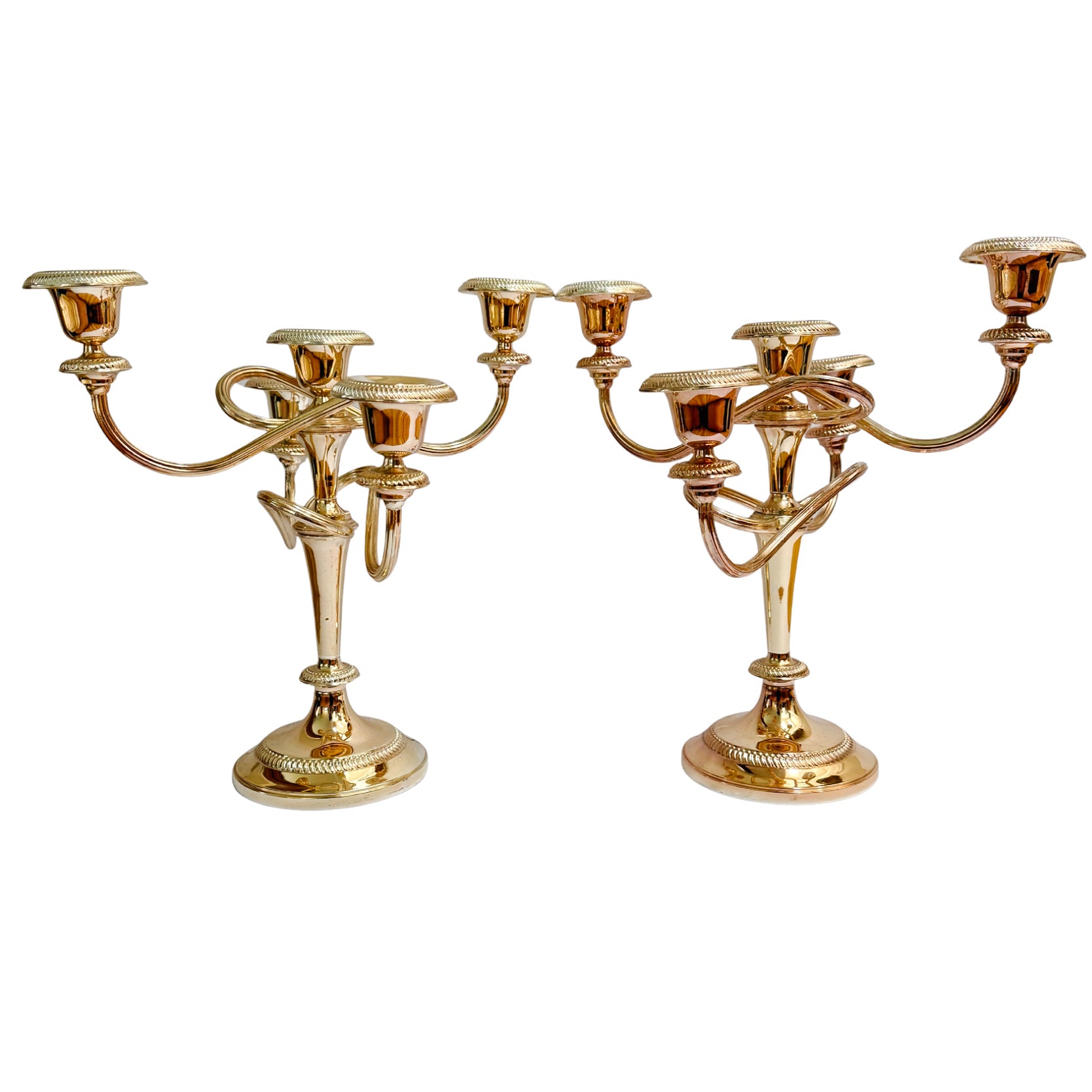 Pair of Early 20th Century Parisian Silver-on-Copper 5-Arm Candelabras