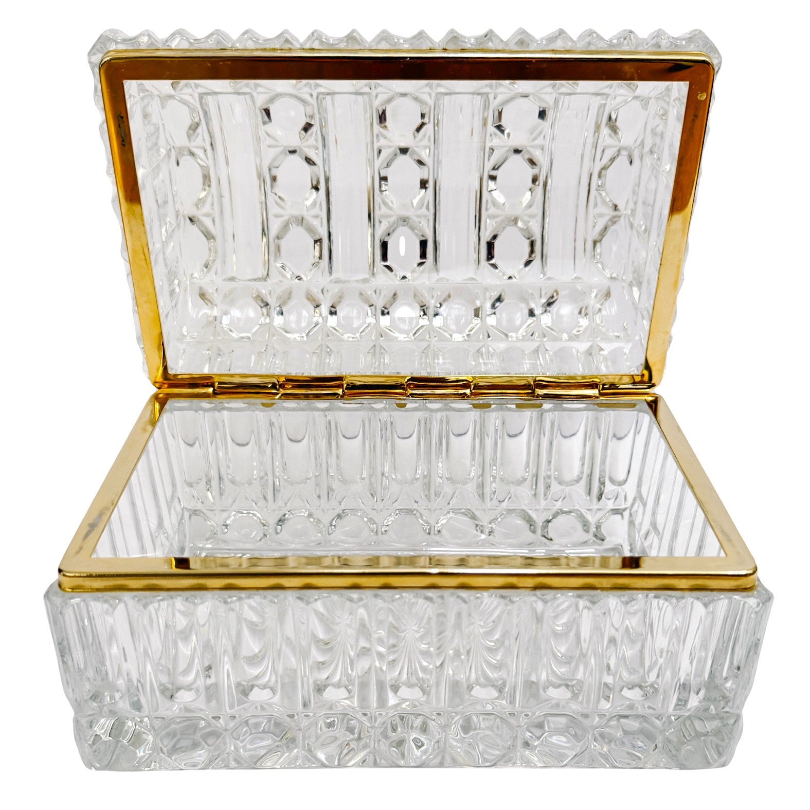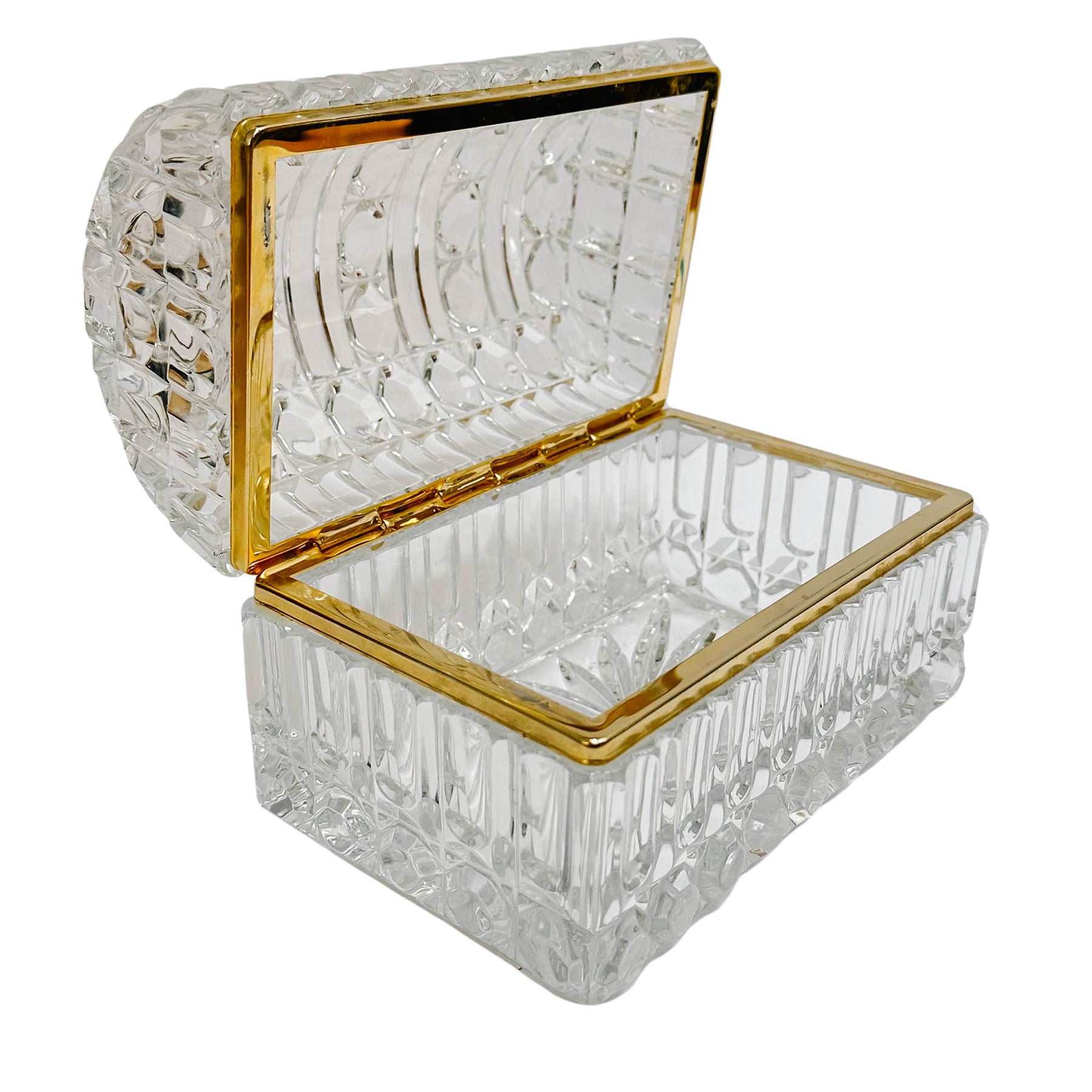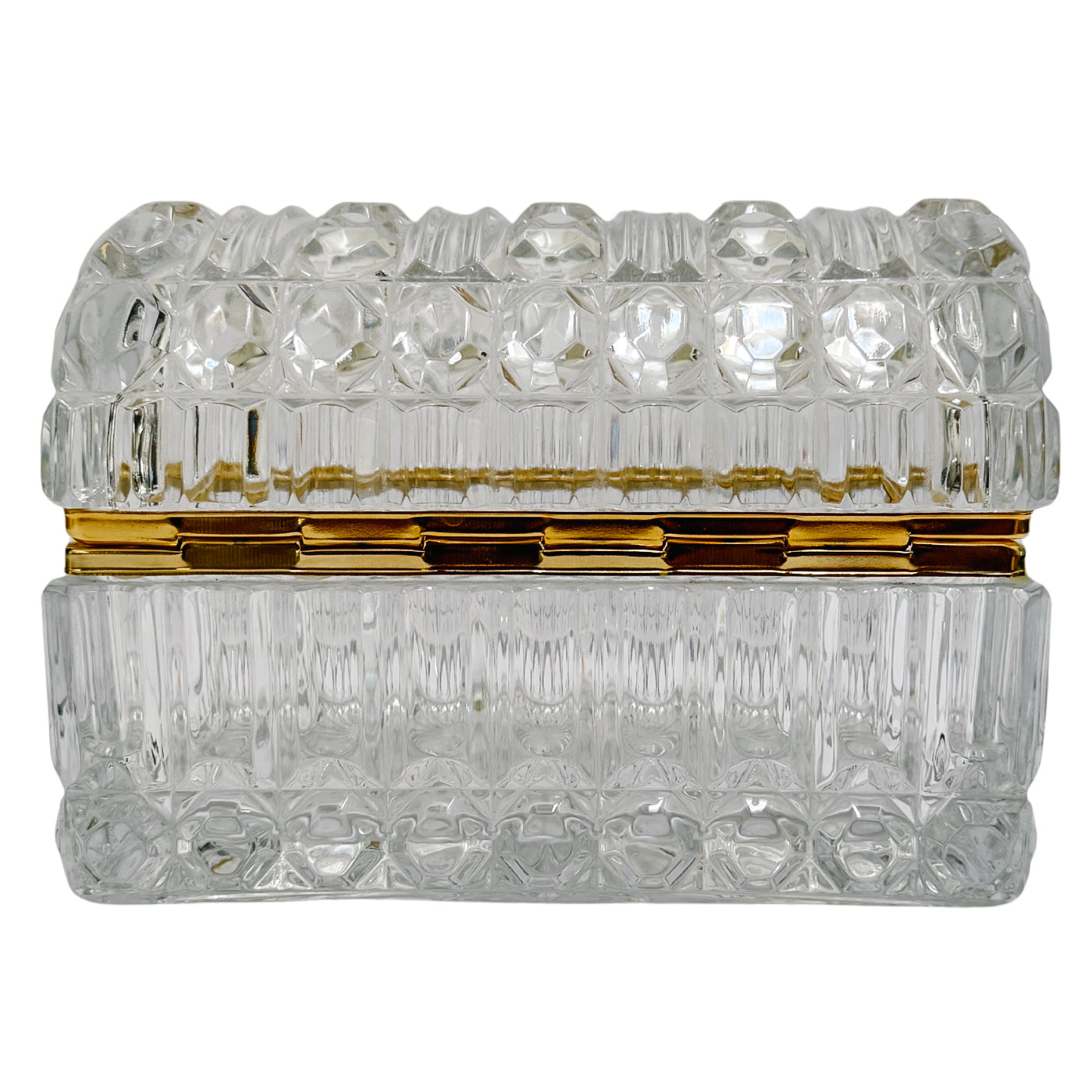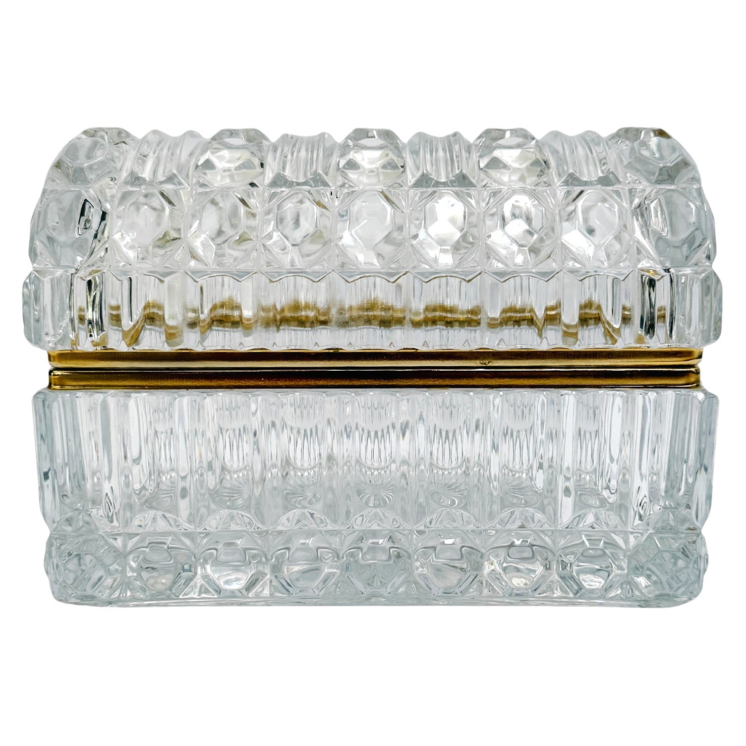 Large Baccarat Style Domed Crystal Casket Box With Brass Frame