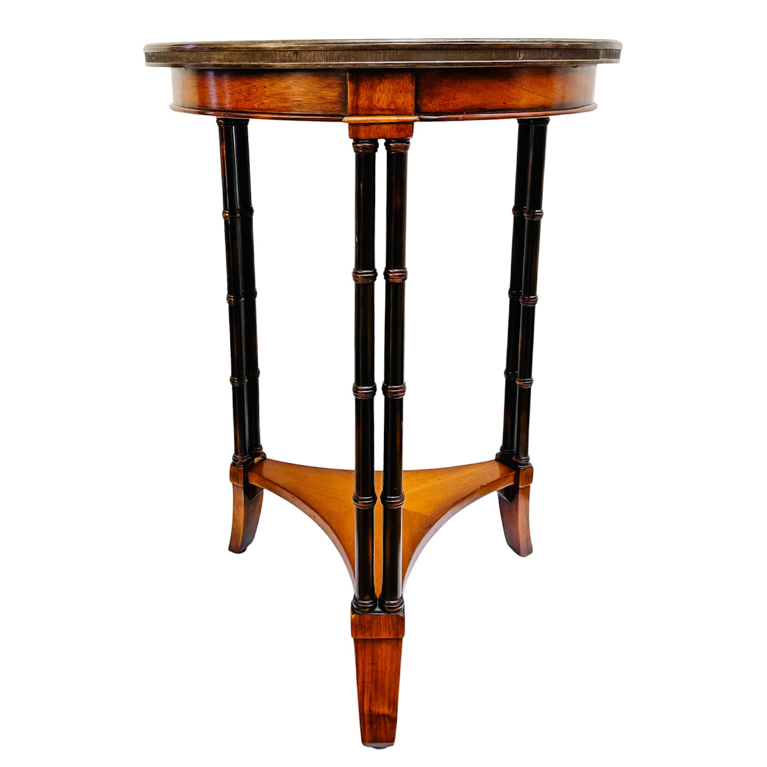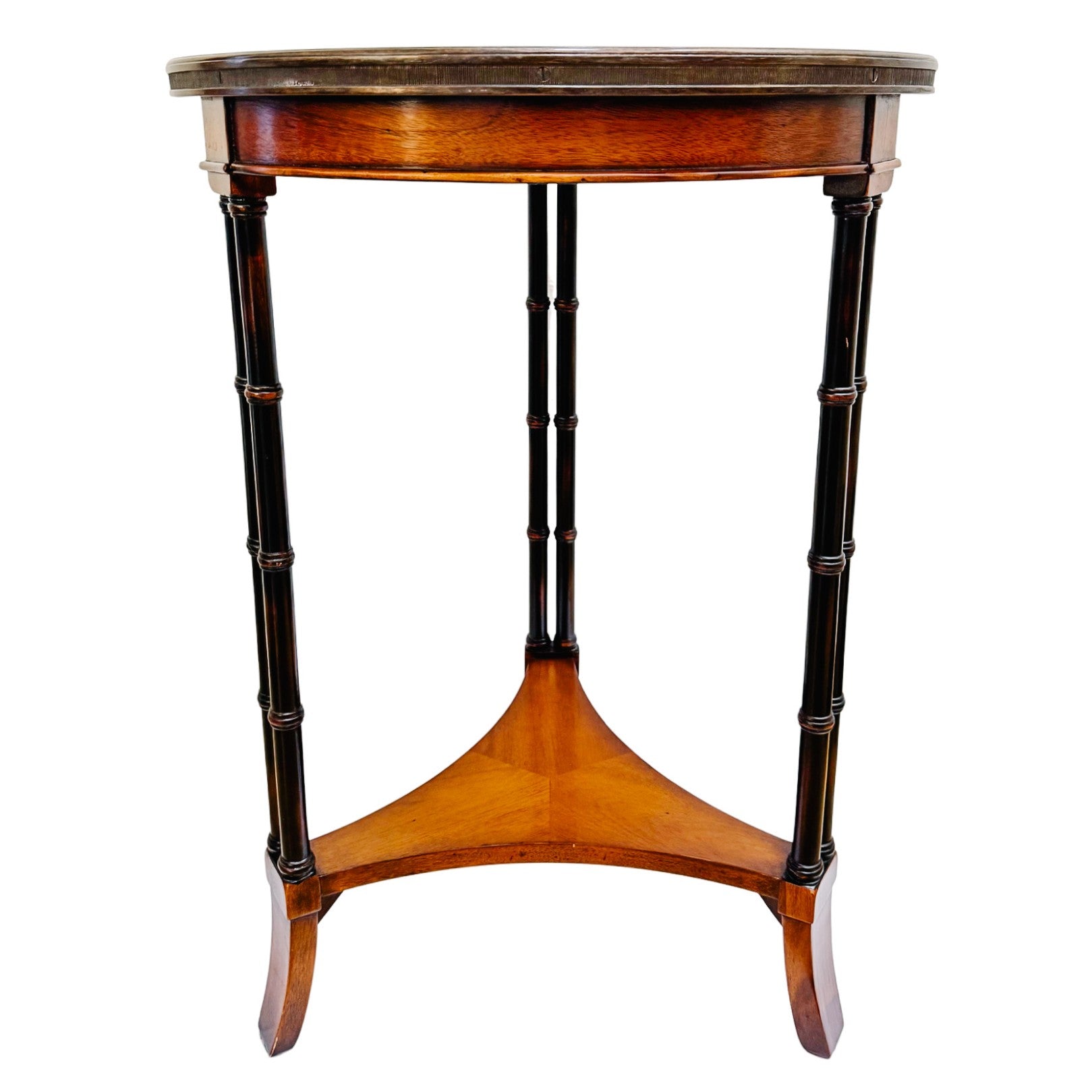 American Regency Revival Mahogany Martini Accent Table With Faux Bamboo Legs & Brass Gallery
