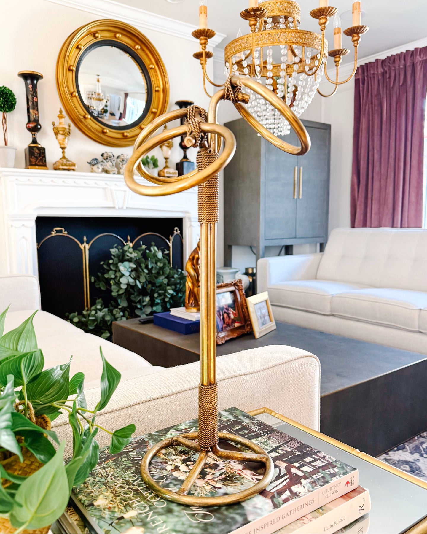 1960s Italian Tole Gilt Rope Three Ring Towel Holder