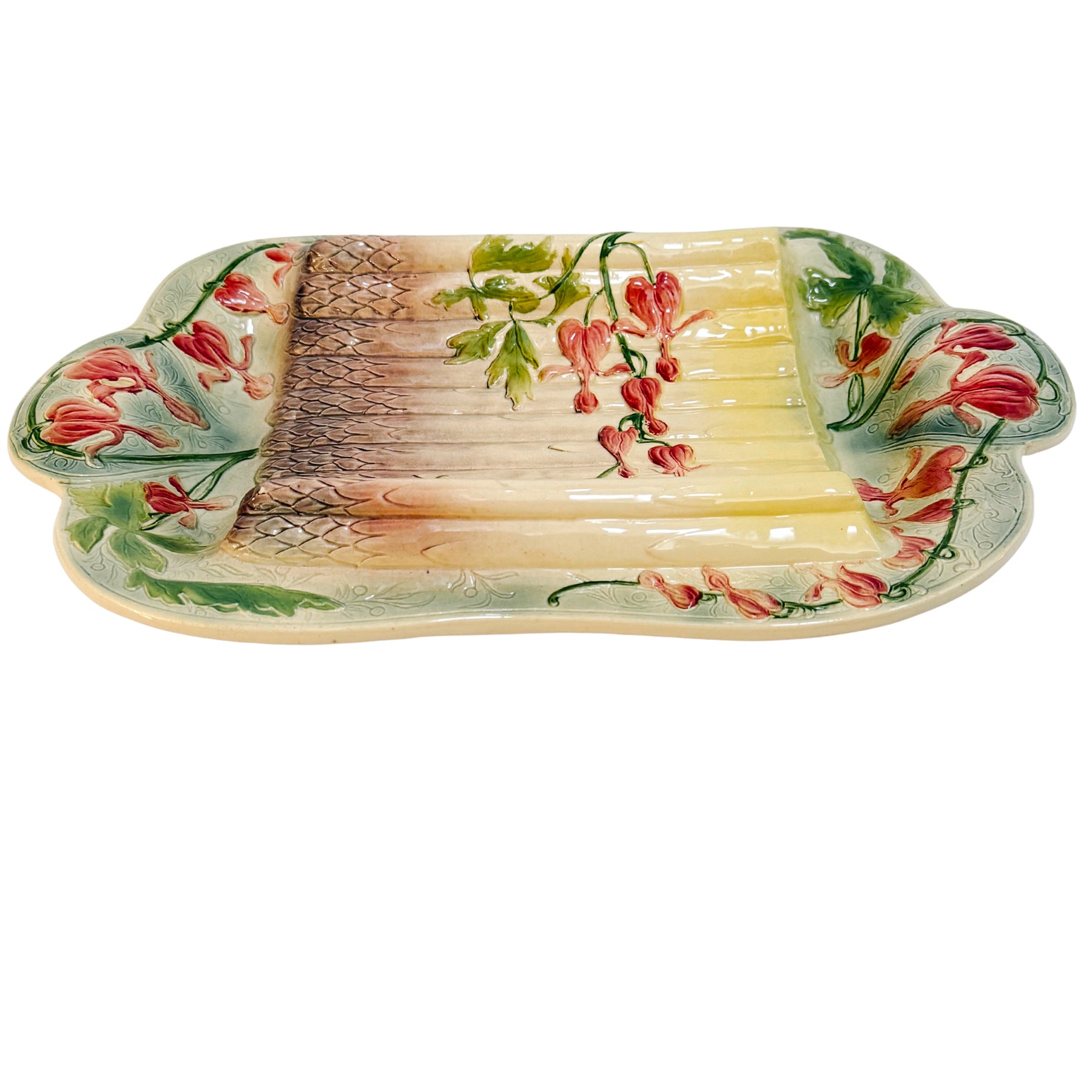 Antique French Majolica Asparagus Serving Platter by St. Clément