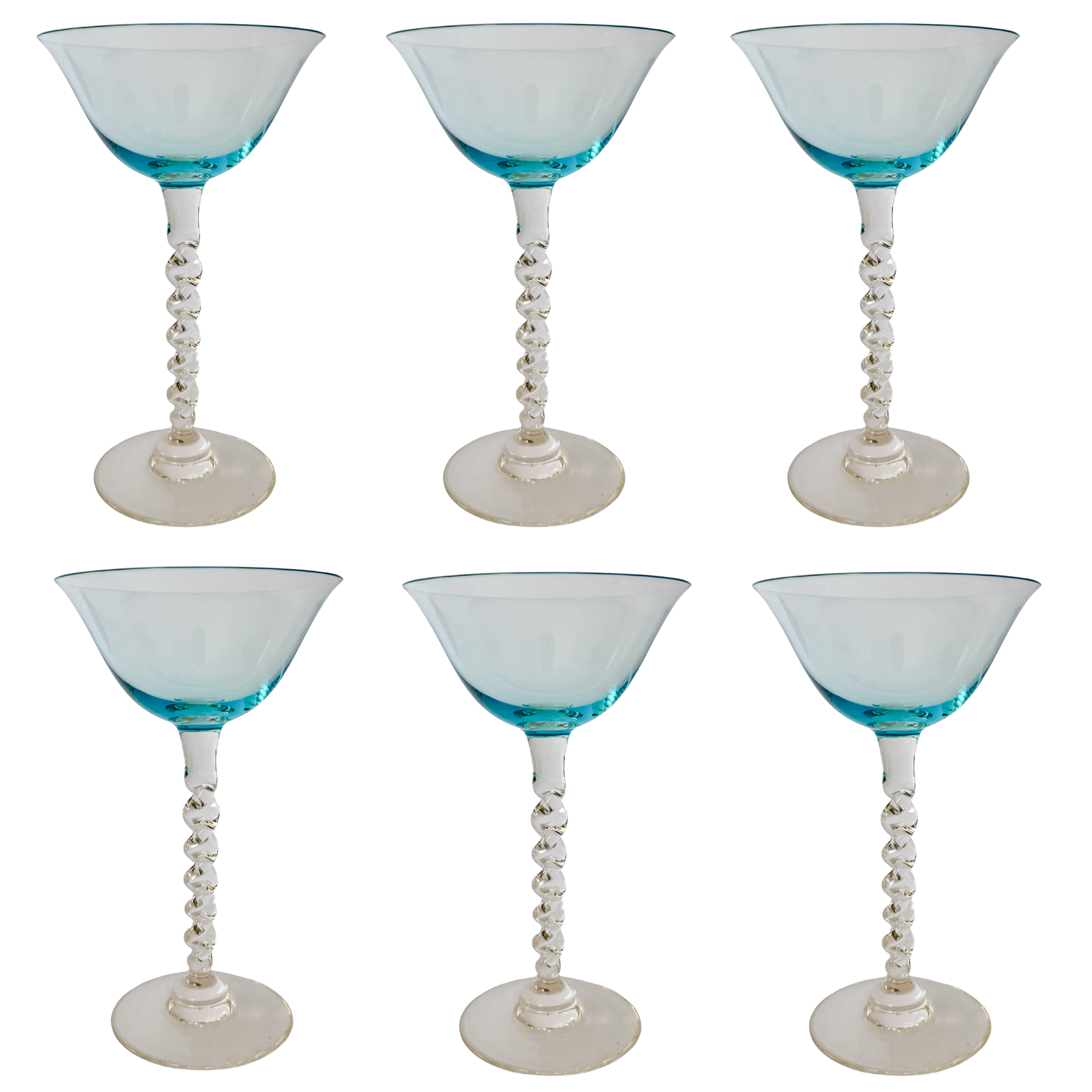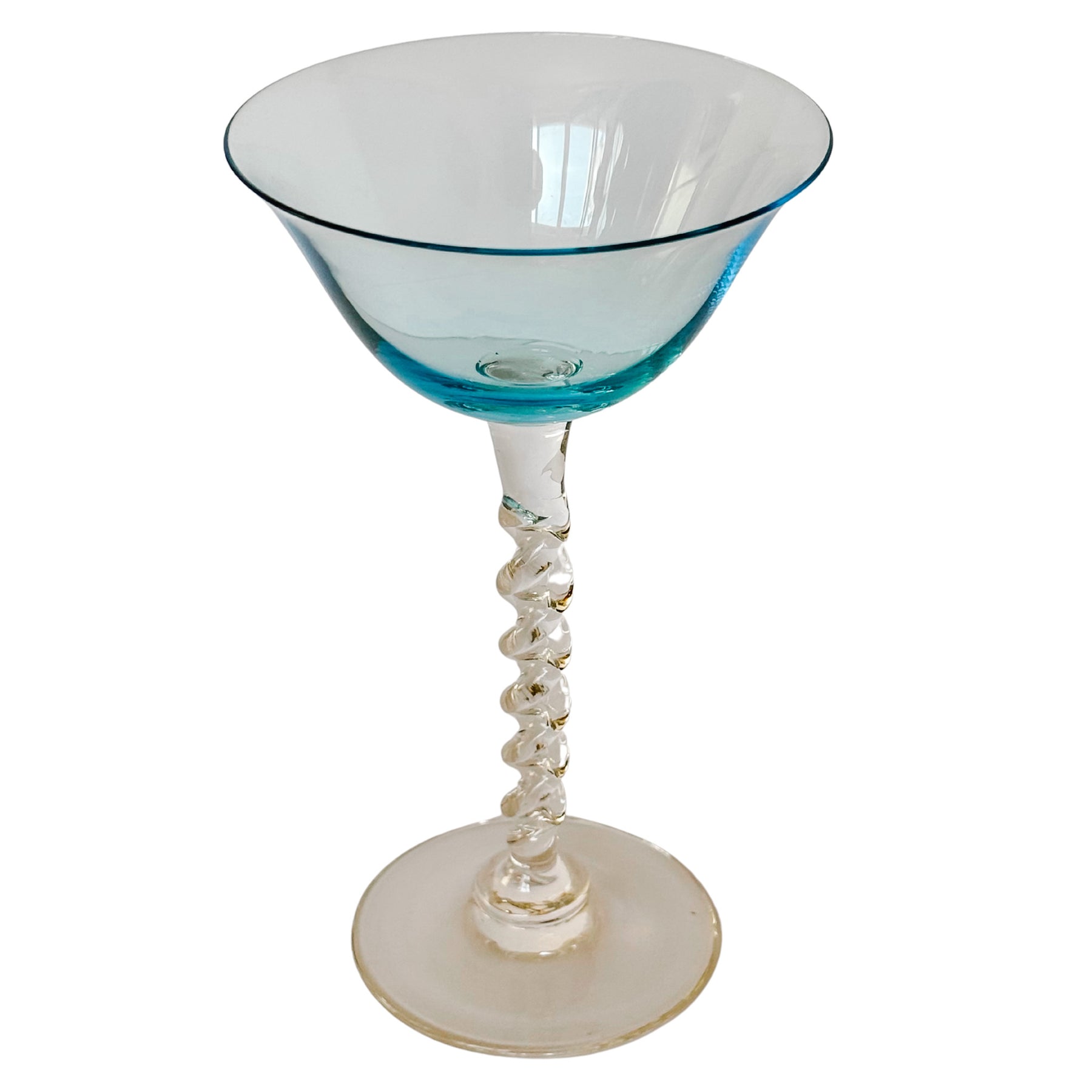 MCM Twisted Stem Aqua Blue Martini Glasses Set Of 6