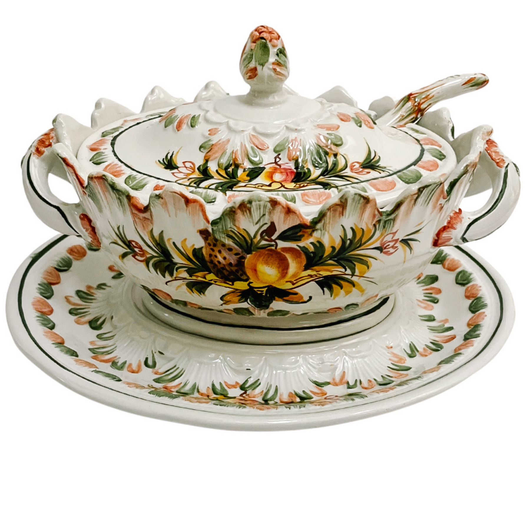 Vintage Italian Faience Small Tureen With Underplate & Ladle