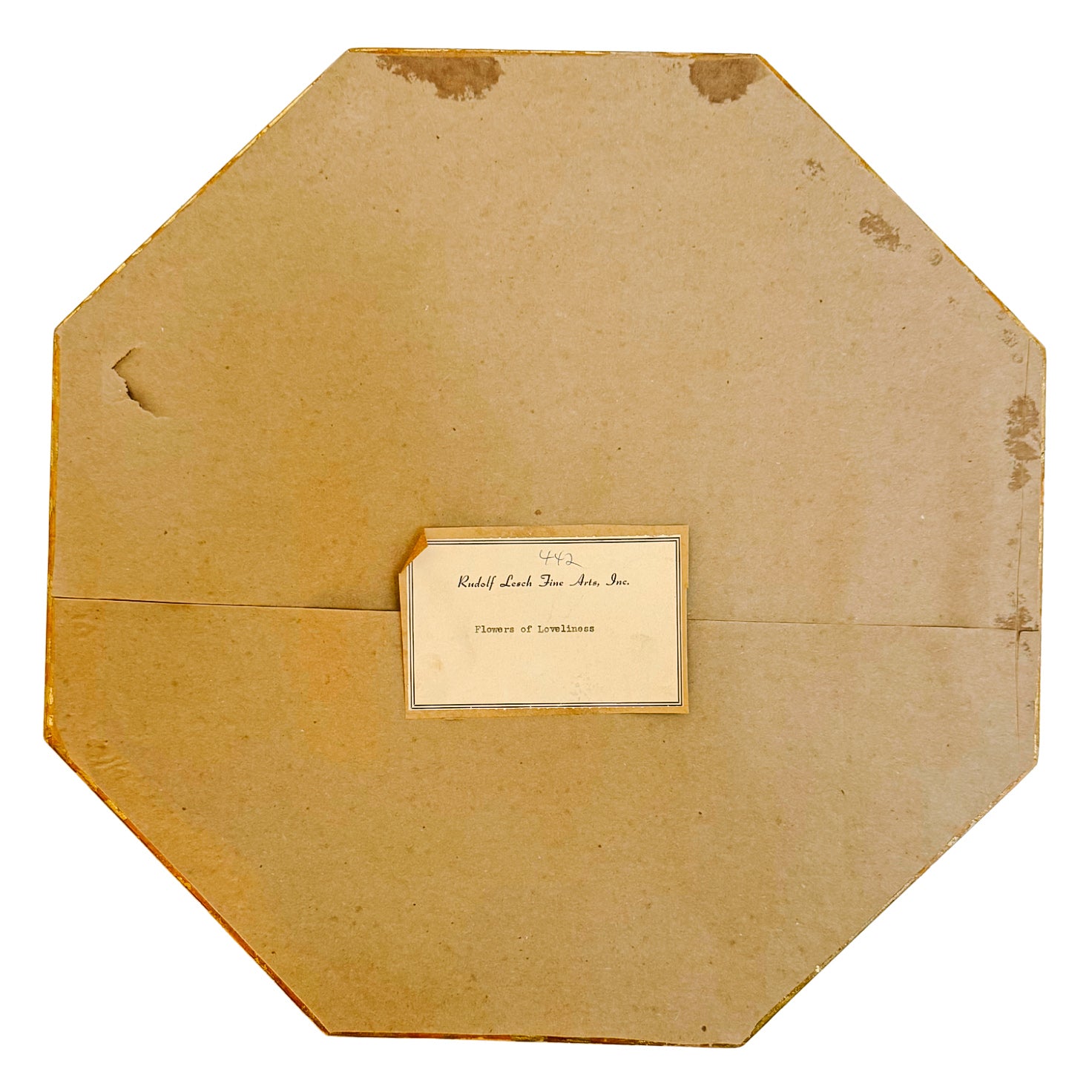 Pair of mid-century lithographs from the "Flowers of Loveliness" collection published by Rudolf Lesch Fine Arts, Inc. Originally painted by British artist Edmund Thomas Parris (famed for his portraits of Queen Victoria), these scenes depict elegant ladies in Regency-era finery, surrounded by soft floral motifs and classical architecture. Housed in striking octagonal frames featuring a sophisticated gold-and-ivory finish accented by pink matting and protected under glass. The architectural shape and layered molding add a unique, dimensional quality that sets them apart from standard rectangular art. Perfect for the gallery wall.