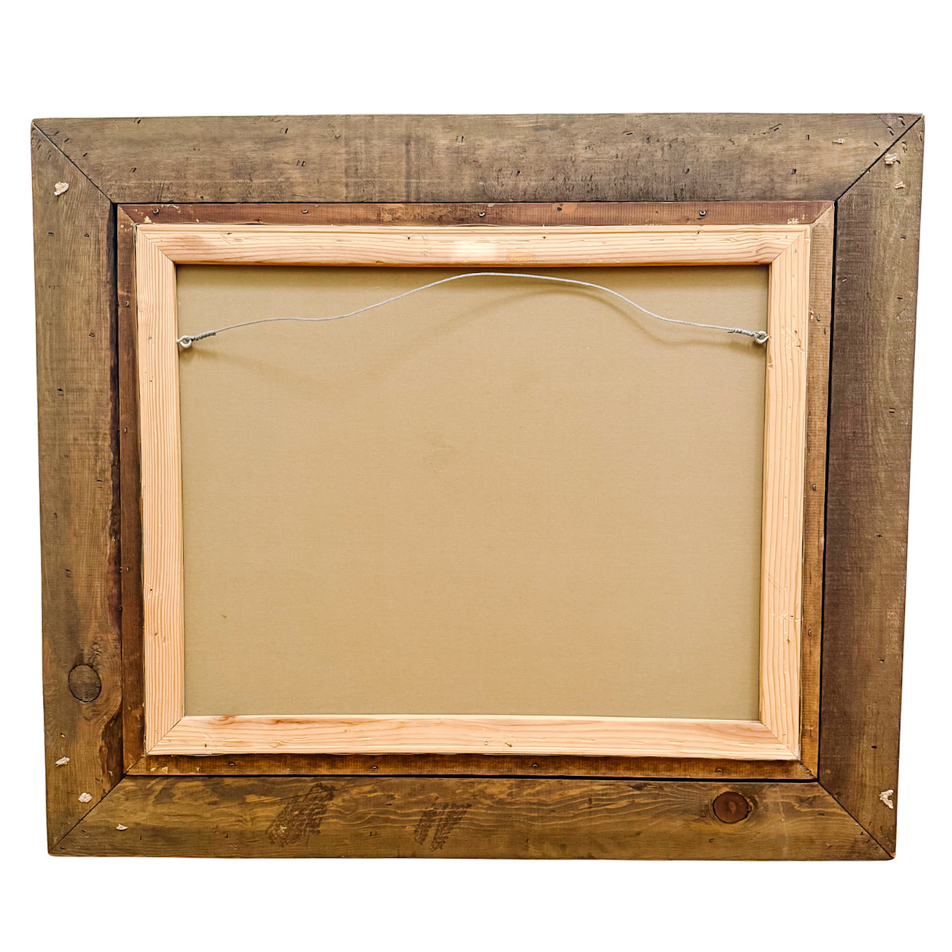 Excellent vintage condition. The canvas is taut with age-appropriate craquelure that adds to its character. The frame shows minor wear consistent with age but remains structurally sound and visually impressive.