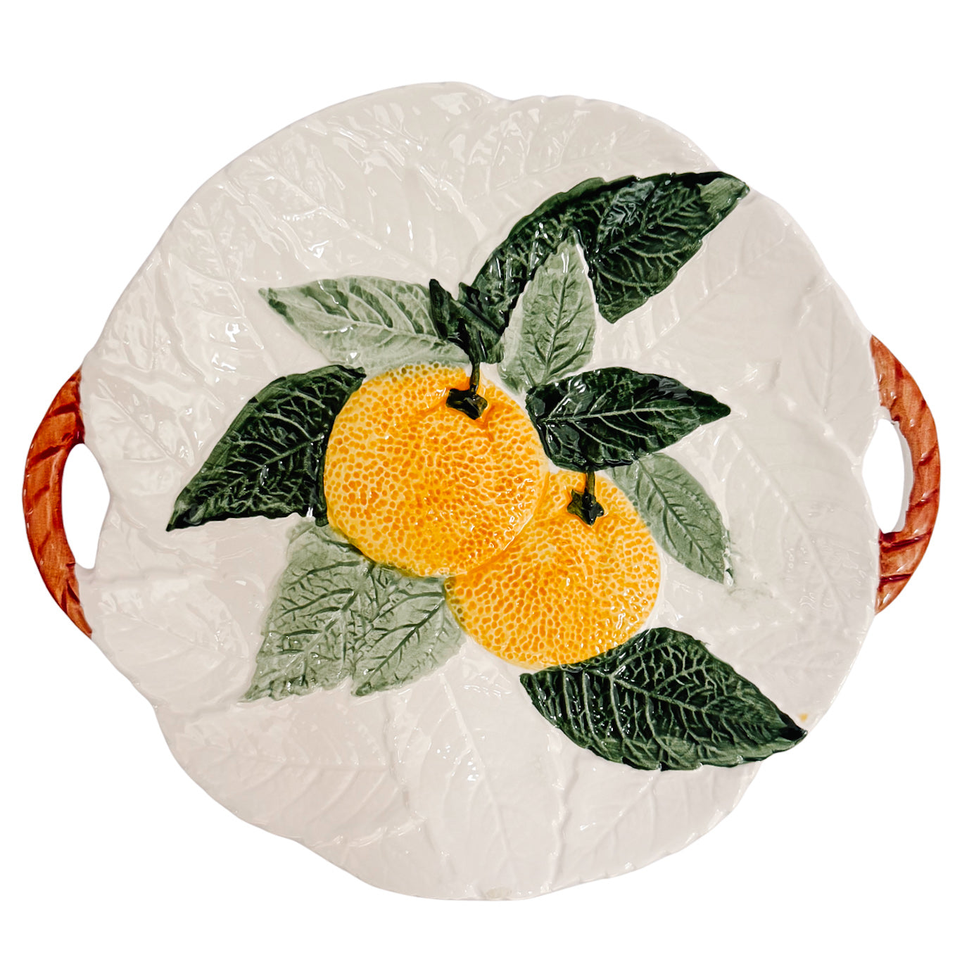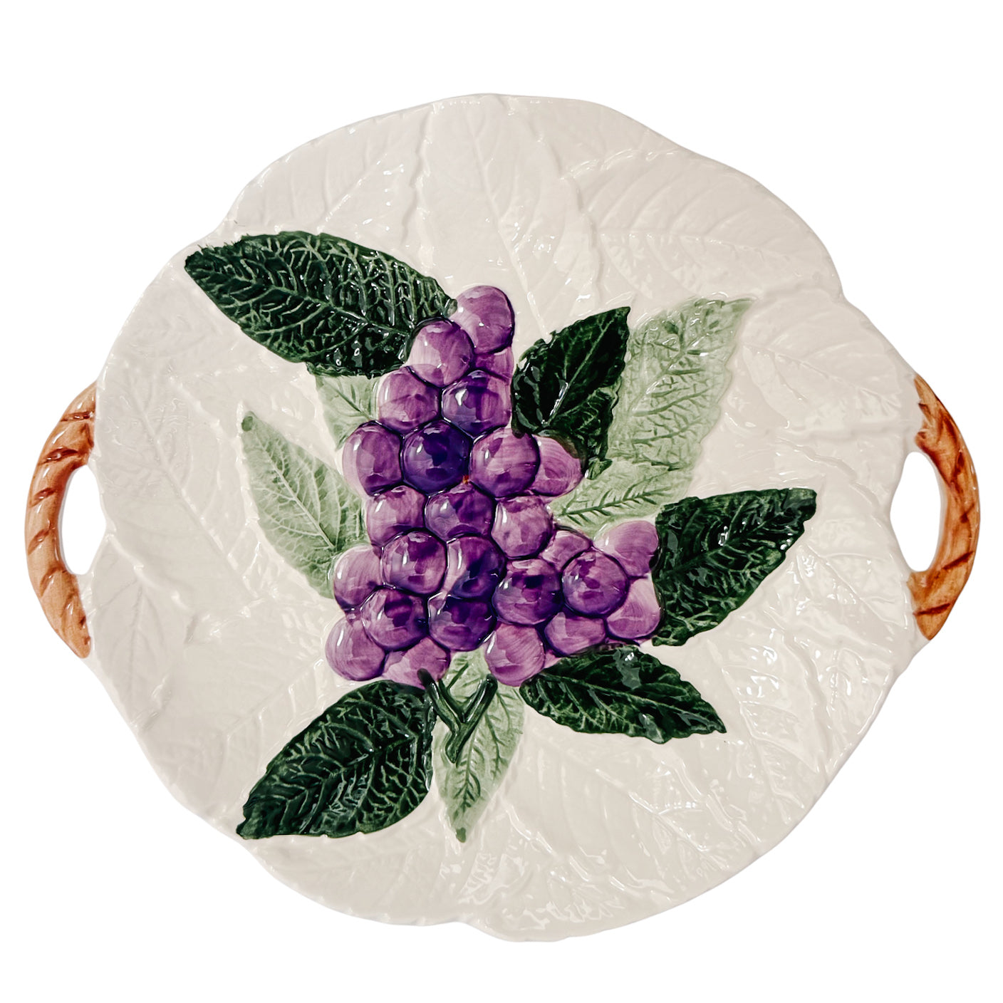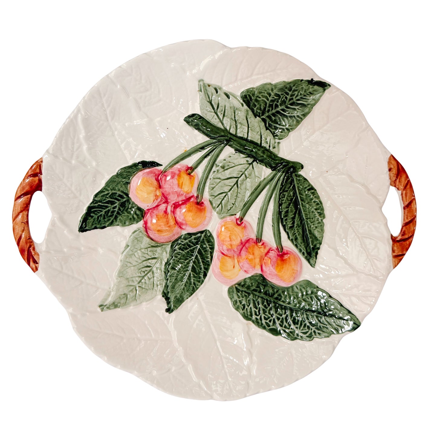 Beautiful vintage Japanese majolica fruit decorative cabinet plates with handles that will add such a happy note to your home decor. Perfect for spring!